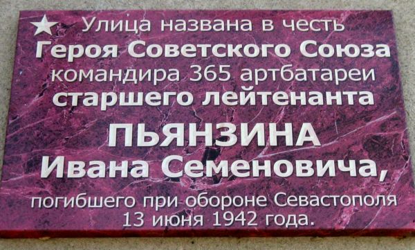 Пьянзин Иван Семёнович - командир 365-й батареи 110-го зенитного артиллерийского полка противовоздушной обороны (ПВО) Береговой обороны Черноморского флота, старший лейтенант.