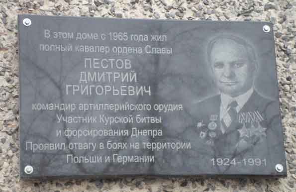 Пестов Дмитрий Григорьевич - наводчик орудия 275-го гвардейского истребительно-противотанкового артиллерийского полка (4-я гвардейская отдельная истребительно-противотанковая артиллерийская бригада РВГК, 47-я армия, 1-й Белорусский фронт), гвардии младший сержант - на момент представления к награждению орденом Славы 1-й степени.