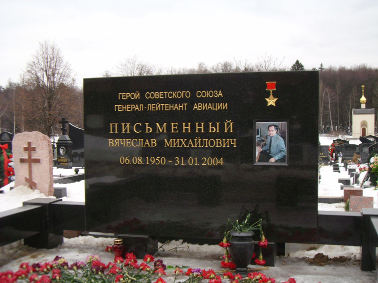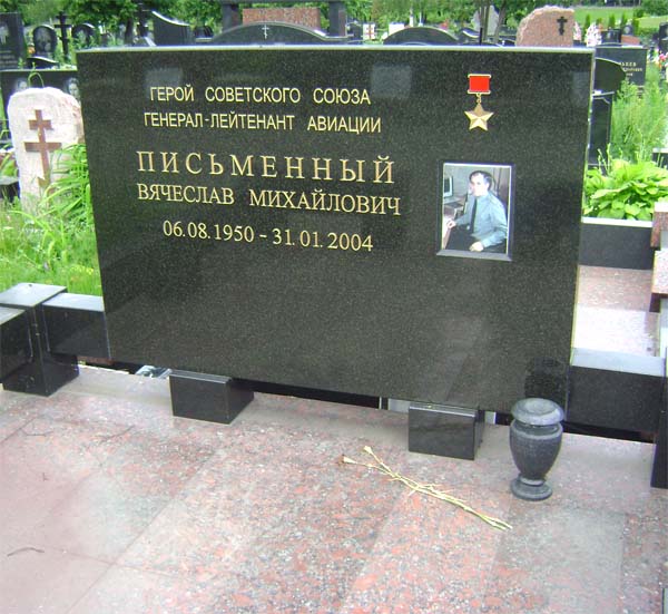 Заместитель командующего – начальник штаба армейской авиации Сухопутных войск, генерал-лейтенант авиации В.М.Письменный трагически погиб 31 января 2004 года. Похоронен на Троекуровском кладбище в Москве (участок 5).