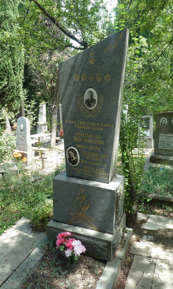 Пишкан Иван Аникеевич - командир эскадрильи 91-го гвардейского истребительного авиационного полка 6-й гвардейской истребительной авиационной дивизии 8-й воздушной армии 4-го Украинского фронта, гвардии капитан.