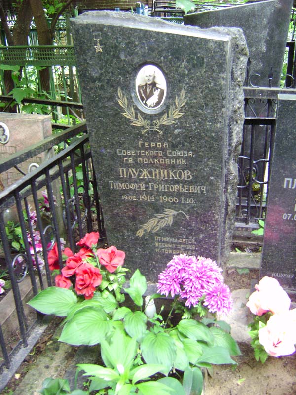 Плужников Тимофей Григорьевич - командир 293-го гаубичного артиллерийского полка 9-й гаубичной артиллерийской бригады 5-й артиллерийской дивизии 4-го артиллерийского корпуса прорыва 8-й гвардейской армии 1-го Белорусского фронта, подполковник.