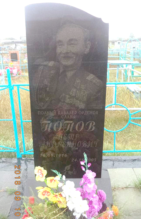 Приказом по войскам 43-й армии (№127) от 27 апреля 1945 года гвардии младший сержант Попов Пётр Андриянович награжден орденом Славы 2-й степени (повторно).