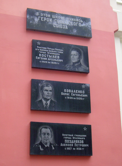 На здании школы в Краснодаре, в которой учился Герой, установлена мемориальная доска.