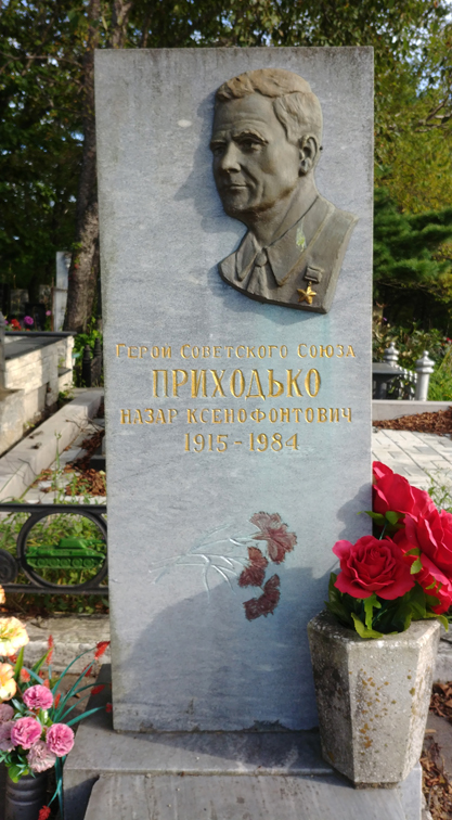 За успешное форсирование реки Днепр южнее Киева, прочное закрепление плацдарма на западном берегу реки Днепр и проявленные при этом отвагу и геройство указом Президиума Верховного Совета СССР от 23 октября 1943 года красноармейцу Приходько Назару Ксенофонтовичу присвоено звание Героя Советского Союза с вручением ордена Ленина и медали "Золотая Звезда".