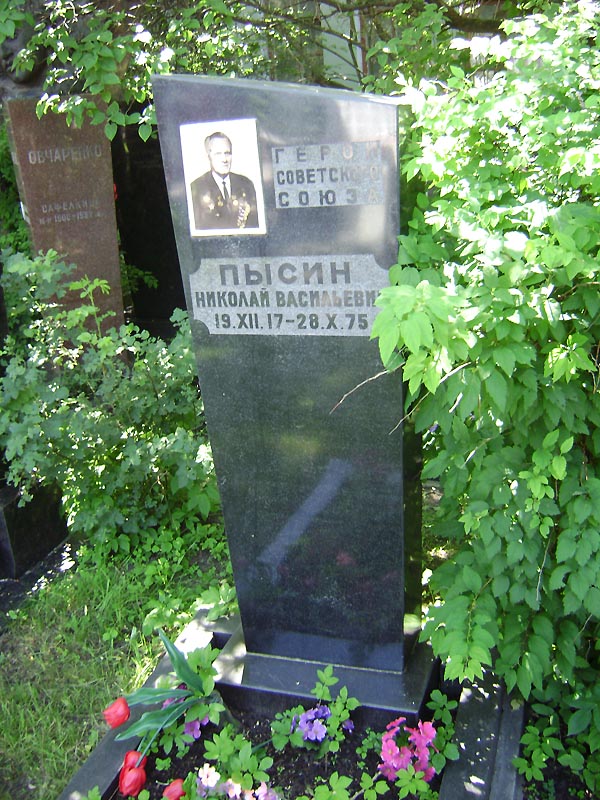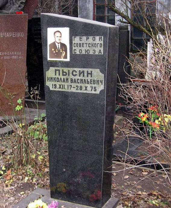 Но это было не так. Пысина взрывом выбросило из машины. Когда к нему вернулось сознание, он увидел, что окружён врагами. Напрягая всю свою волю, Пысин всё же дотянулся под курткой до «Золотой Звезды», оторвал её от планки и незаметно для фашистов сунул в рот !