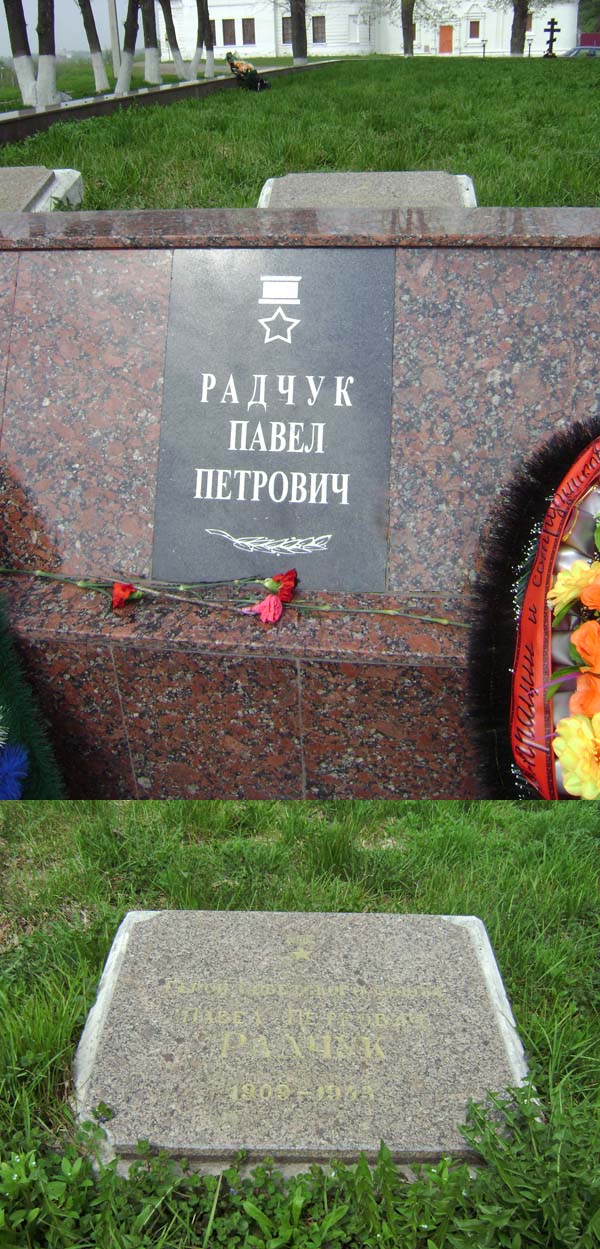 Отважный лётчик авиации дальнего действия пал смертью храбрых 6 октября 1943 года в воздушном бою. В этот день, при возвращении с боевого задания, самолёт подполковника Радчука П.П. был подбит в районе села Иваньково Тульской области, расположенного в 15-20 километрах от города Серпухова Московской области. Зная, как опытный пилот, что до аэродрома ему не дотянуть, командир приказал экипажу покинуть самолёт, а сам сумел отвести теряющий управление бомбардировщик подальше от населённых пунктов...