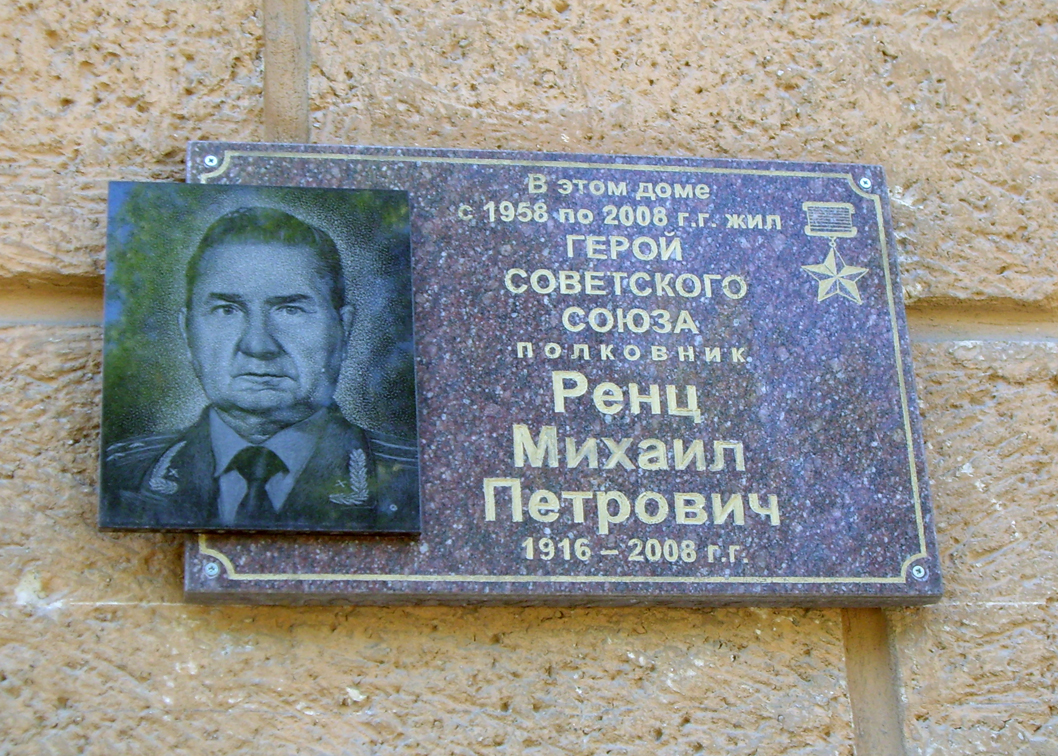 Ренц Михаил Петрович – командир авиаэскадрильи 30-го гвардейского истребительного авиационного полка (273-я истребительная авиационная дивизия, 6-й истребительный авиационный корпус, 16-я воздушная армия, 1-й Белорусский фронт), гвардии майор.