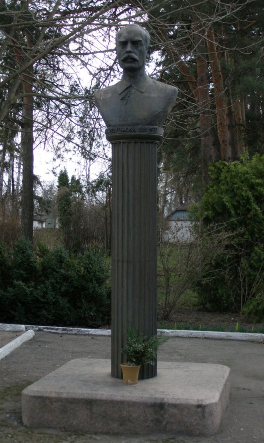 Установлен в селе Иржавец Ичнянского района Черниговской области (Украина) возле музея-усадьбы Л.Н.Ревуцкого. Открыт в июле 1989 года. Фото Олега Кожухаря, 13.04.2010.