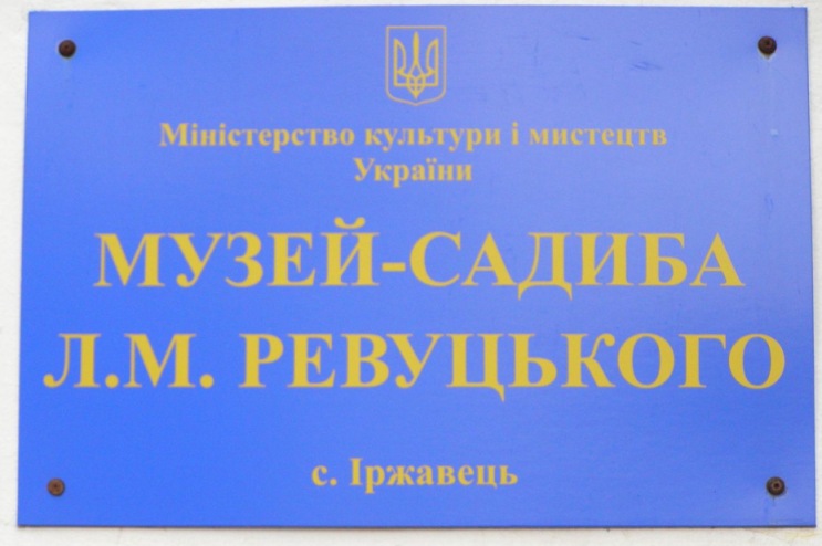 Вывеска в селе Иржавец Ичнянского района Черниговской области (Украина) на музее-усадьбе Л.Н.Ревуцкого. Фото Олега Кожухаря, 13.04.2010.