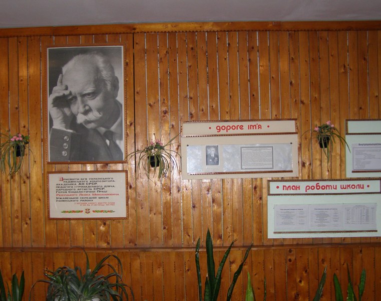 Оборудован в вестибюле школы имени Л.Н.Ревуцкого (село Иржавец Ичнянского района Черниговской области, Украина). Фото Олега Кожухаря, 24.09.2013.
