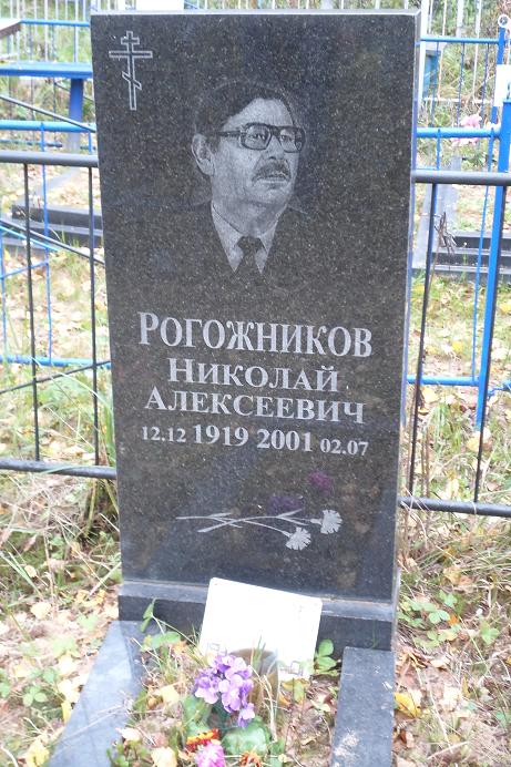До 1948 года Н.А.Рогожников оставался на сверхсрочной службе в Советской армии, после демобилизации возвратился в посёлок Вахтан. Работал много лет в Вахтанском химлеспромхозе электромехаником, с 1970 года – инженером по охране труда и технике безопасности, затем инженером-технологом взрывных работ. За честный и добросовестный труд его имя заносилось на районную Галерею Трудовой Славы.