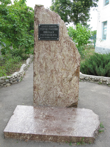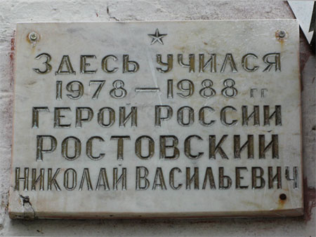 Установлена в Лабинске на школе №1, в которой в 1978-1988 годах учился Н.В.Ростовский. Фото В.А.Рогова, 4.08.2008.