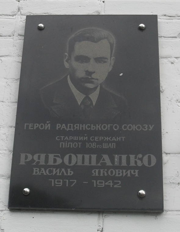 Лётчик 299-го штурмового авиационного полка (2-я ударная авиационная группа Ставки ВГК) комсомолец старший сержант Василий Рябошапко совершил 16 успешных боевых вылетов на разведку и штурмовку вражеских войск; в 4 воздушных боях сбил 3 самолёта противника.