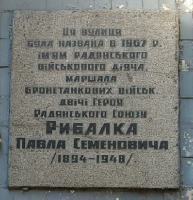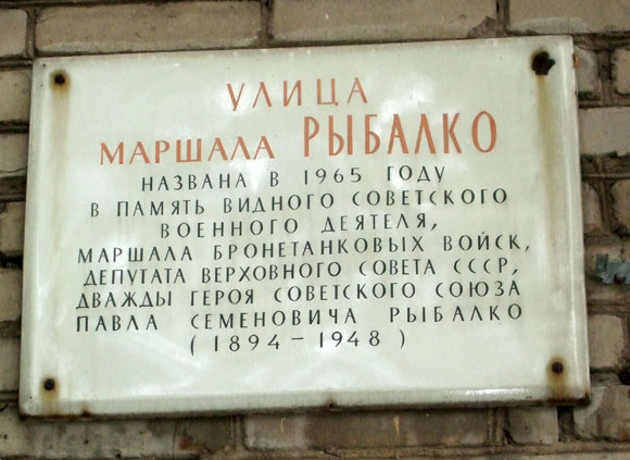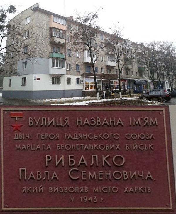Установлена на доме № 1 по улице маршала Рыбалко в городе Харьков (Украина). Фото Владимира Тарапата, 2014 г.