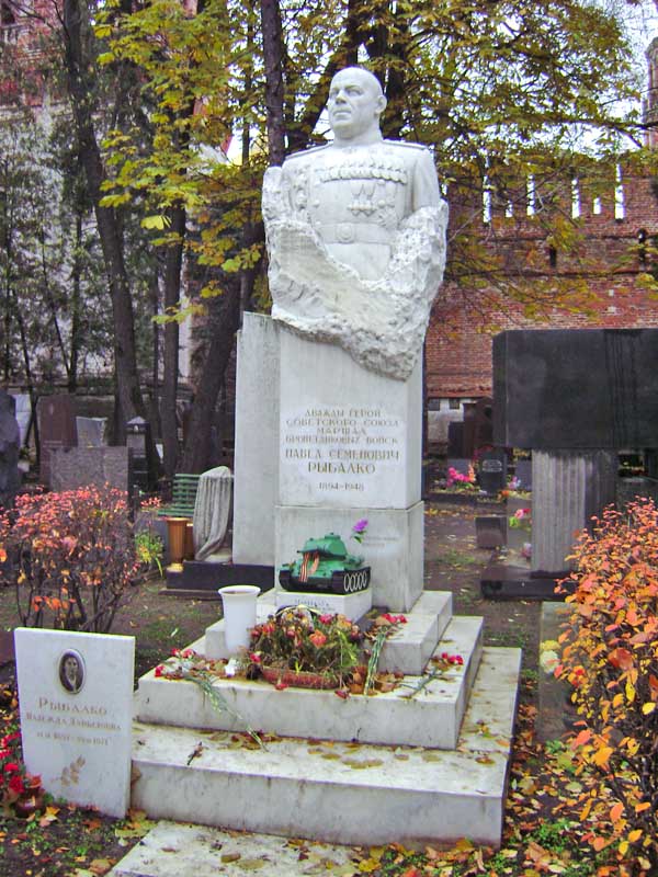 Бюст П. С. Рыбалко, установленый 5 ноября 2011 года в Киеве на аллее Славы в Парке Славы. Скульпторы А. Шлапак, Е. Карпов, Е. Карпов, архитектор Л. Малий. Фото с сайта «Kiev-foto.info».