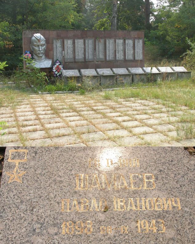 В ночь на 27 сентября 1943 года стрелок 1323-го стрелкового полка красноармеец П.И.Шамаев с группой бойцов переплыл Днепр в районе хутора Змеи Репкинского района Черниговской области и закрепился на правом берегу. Приняв командование группой, организовал отражение контратак противника и удержание захваченного рубежа. Когда отдельным фашистским автоматчикам удалось вплотную приблизиться к обороняющимся, Шамаев первым выскочил из укрытия и поднял за собой солдат. В этом бою он лично уничтожил 12 фашистов.