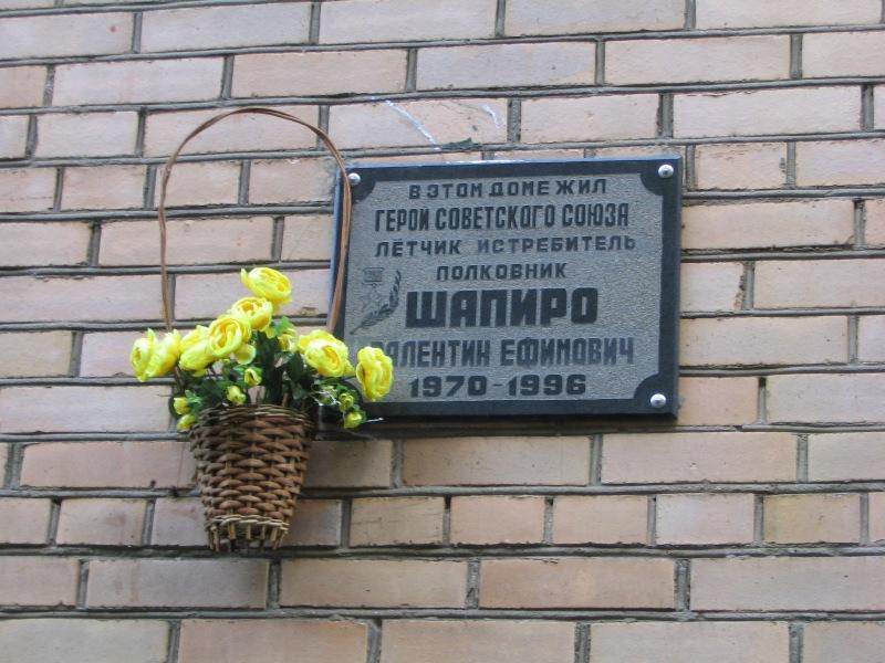 Шапиро Валентин Ефимович - командир звена 31-го гвардейского истребительного Никопольского Краснознаменного ордена Суворова авиационного полка 6-й гвардейской истребительной Донской-Сегедской Краснознаменной ордена Суворова авиационной дивизии 3-го гвардейского истребительного авиационного корпуса 5-й воздушной армии 2-го Украинского фронта, гвардии старший лейтенант.