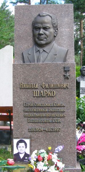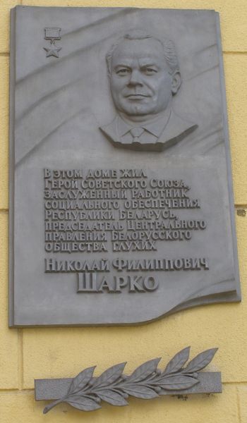 В Минске на доме, в котором жил Н.Ф.Шарко, установлена мемориальная доска; в городе Дзержинск Минской области на Аллее Героев – памятный знак. Имя Героя присвоено Республиканскому Дворцу культуры Белорусского общества глухих и улице в городе Дзержинск.
