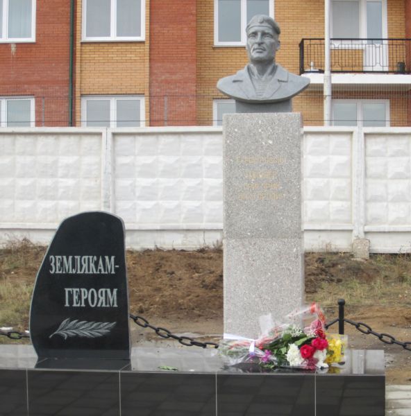 Бюст в селе Кулунда Кулундинского района Алтайского края на Аллее Памяти землякам-героям. Аллея и бюст открыты 4.11.2011. Фото Марии Викторовны Ширяевой, 2011.
