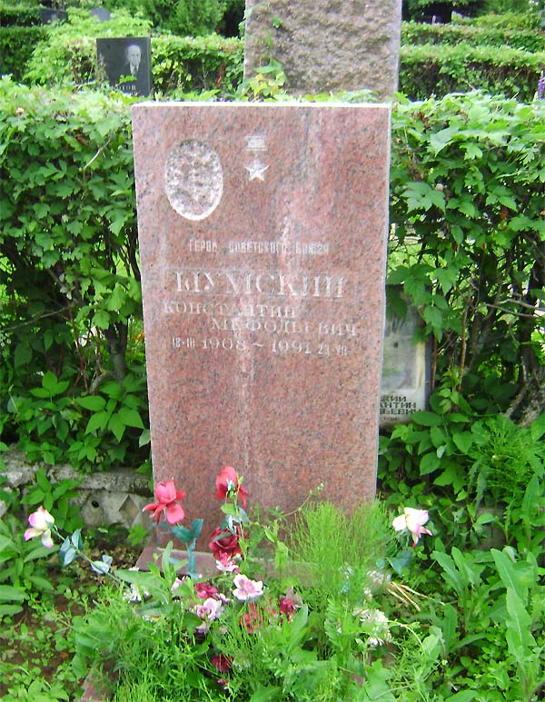 Шумский Константин Мефодьевич - командир эскадрильи 93-го гвардейского штурмового авиационного полка (5-я гвардейская штурмовая авиационная дивизия, 1-й смешанный авиационный корпус, 17-я воздушная армия, 3-й Украинский фронт), гвардии майор.