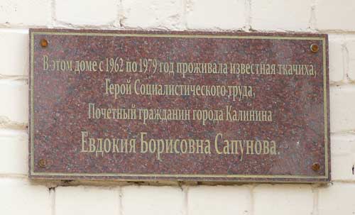 В городе Тверь, на доме где жила знатная ткачиха, установлена мемориальная доска.