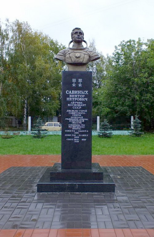 Бронзовый бюст дважды Героя Советского Союза В.П.Савиных установлен на его родине. 25 октября 2007 года в городе Киров на площадке у музея К.Э.Циолковского открыт бюст Героя.