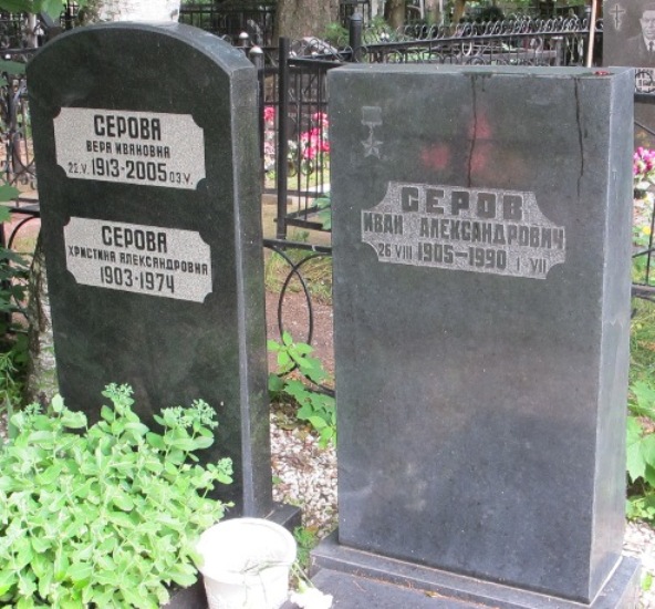 С 8 декабря 1958 года генерал армии Серов И.А. - начальник Главного разведывательного управления (ГРУ) - заместитель начальника Генерального штаба Вооруженных Сил СССР. Депутат Верховного Совета СССР 1-го, 2-го (1941-1950 годы), 5-го (1958-1962 годы) созывов. Член ЦК КПСС (25.02.1956-17.10.1961), кандидат в члены ЦК КПСС (20.02.1941-14.02.1956).