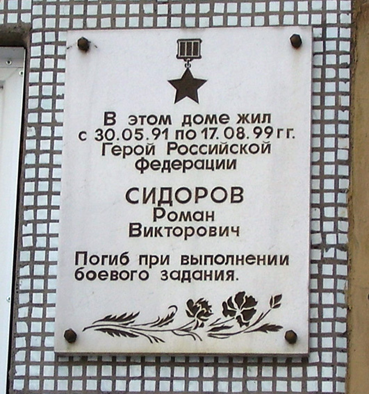Указом Президента Российской Федерации от 9 сентября 1999 года за мужество и героизм, проявленные при выполнении воинского долга в Северо-Кавказском регионе гвардии лейтенанту Сидорову Роману Викторовичу посмертно присвоено звание Героя Российской Федерации.