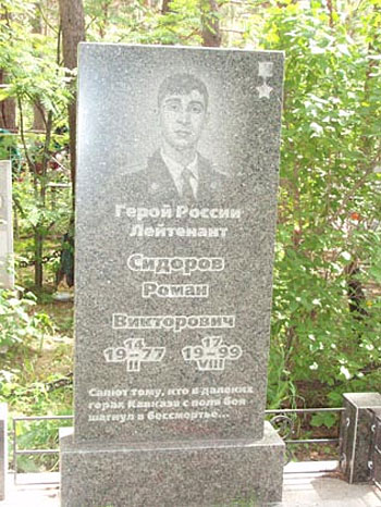 Доблестно сражался с врагом и молодой лейтенант Роман Сидоров. Совершил несколько разведвыходов, умело руководил бойцами. Только очень коротким оказался его боевой путь. 17 августа 1999 года* в районе села Тандо при сопровождении боевой машины пехоты с раненными бойцами попал в засаду. БПМ получила прямые попадания нескольких гранат. Взрывом лейтенанту оторвало обе ноги. Однако он нашел в себе силы открыть ответный огонь по позициям боевиков. Под его прикрытием бойцы успели эвакуировать из БМП уцелевших раненых и укрыть их за камнями у дороги, занять позиции и вступить в бой с боевиками. Вскоре их выручила подоспевшая подмога. Но лейтенанта Романа Сидорова среди спасенных не было... Он погиб в горящей БПМ, не в силах выбраться оттуда и до последней минуты жизни продолжая вести огонь по врагу...