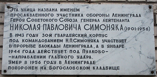 Симоняк Николай Павлович - командир 63-й гвардейской Красносельской стрелковой дивизии 30-го гвардейского Ленинградского Краснознаменного стрелкового корпуса 43-й армии Ленинградского фронта, гвардии генерал-майор.