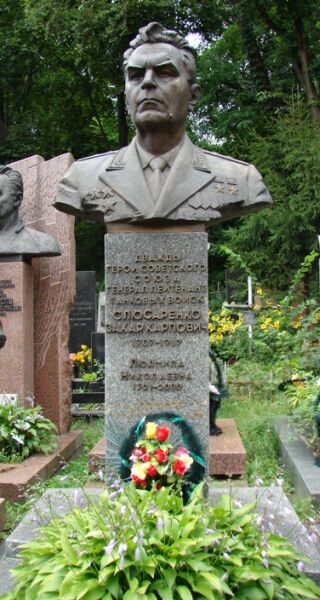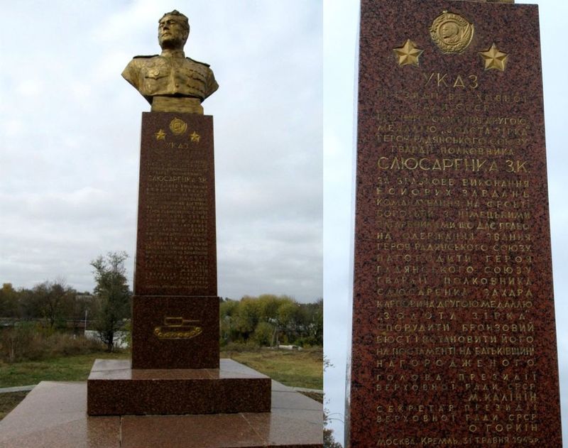 Слюсаренко Захар Карпович - командир 56-й гвардейской Васильковско-Шепетовской ордена Ленина Краснознамённой орденов Суворова 2-й степени и Кутузова 2-й степени танковой бригады 7-го гвардейского Киевско-Берлинского ордена Ленина дважды Краснознамённого ордена Суворова 2-й степени танкового корпуса 3-й гвардейской танковой армии 1-го Украинского фронта, гвардии полковник.