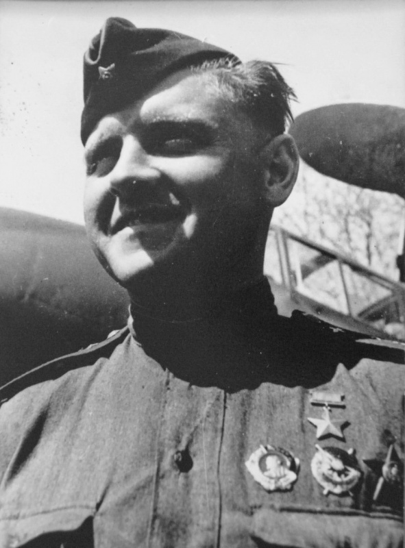 "...с июня 1942 года работает в должности командира авиаэскадрильи. За это время он сколотил хороший боевой коллектив и воспитал замечательные кадры. Он ввел в строй 15 молодых экипажей. Эскадрилья за этот период под его руководством совершила 990 боевых вылетов".