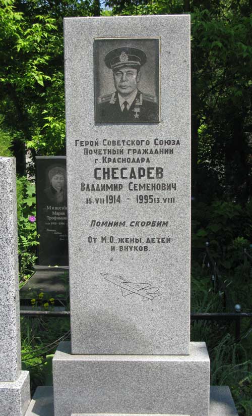 Снесарёв Владимир Семёнович - командир эскадрильи 11-го гвардейского истребительного авиационного полка 1-й минно-торпедной авиационной дивизии ВВС Черноморского флота, гвардии старший лейтенант.