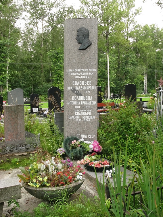 Примечание: В 1973 году звание комиссара милиции 2-го ранга было приравнено к званию генерал-лейтенанта милиции. Поэтому в ряде публикаций и на надгробном памятнике И.В.Соловьёва указано звание генерал-лейтенант милиции.
