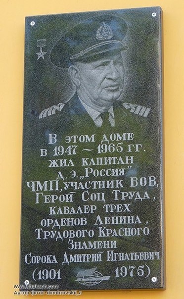 Сорока Дмитрий Игнатьевич – капитан дизель-электрохода «Россия» Черноморского государственного морского пароходства Министерства морского флота СССР (город Одесса).