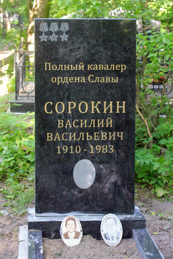 Сорокин Василий Васильевич – старшина* батареи 45-мм пушек 340-го стрелкового полка (46-я стрелковая дивизия, 2-я Ударная армия, 2-й Белорусский фронт), старшина – на момент последнего представления к награждению орденом Славы.