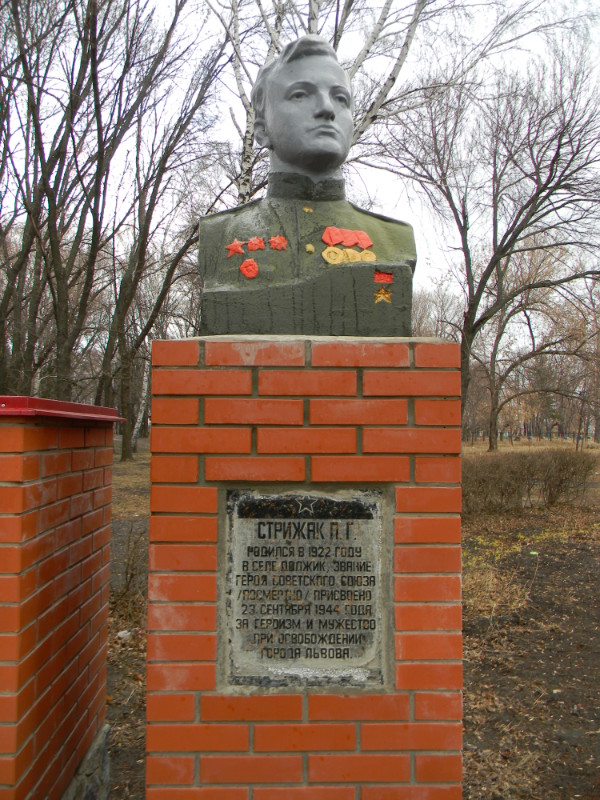 Командир батареи 313-го гвардейского артиллерийского полка (121-я гвардейская Гомельская стрелковая дивизия, 13-я армия, 1-й Украинский фронт) гвардии капитан Павел Стрижак отличился в бою 28 марта 1944 года в районе города Броды Львовской области Украины.