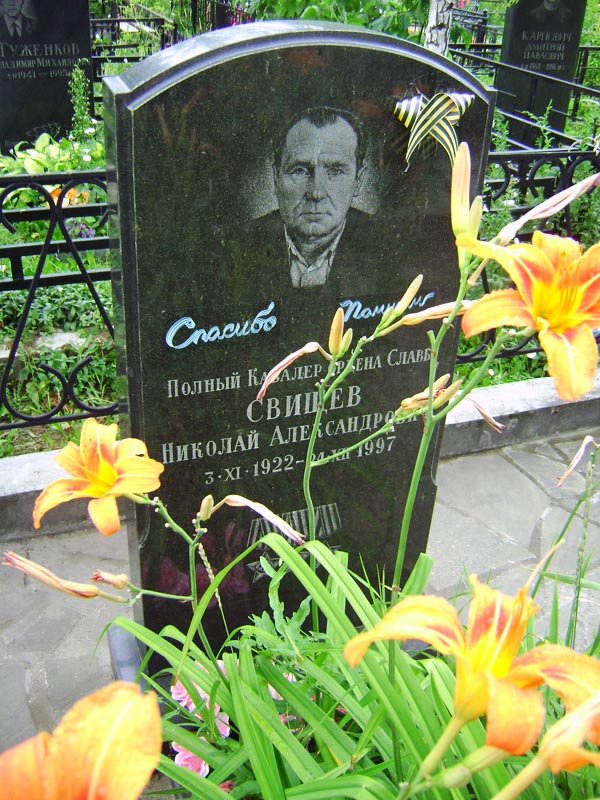 Приказом 7 марта 1945 года гвардии старший сержант Свищёв Николай Александрович награжден орденом Славы 2-й степени (№ 11363).