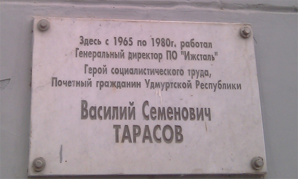 Тарасов Василий Семёнович – директор Ижевского металлургического завода Министерства оборонной промышленности СССР.