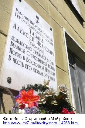 Во время Великой Отечественной войны командир отделения 329-го стрелкового полка 70-й стрелковой дивизии 55-й армии А.И.Тазаев с февраля 1942 года участвовал в оборонительных боях в районе Невской Дубровки (несколько западнее плацдарма «Невский пятачок» по Неве на её северном берегу). В апреле 1942 года этот плацдарм был потерян.
