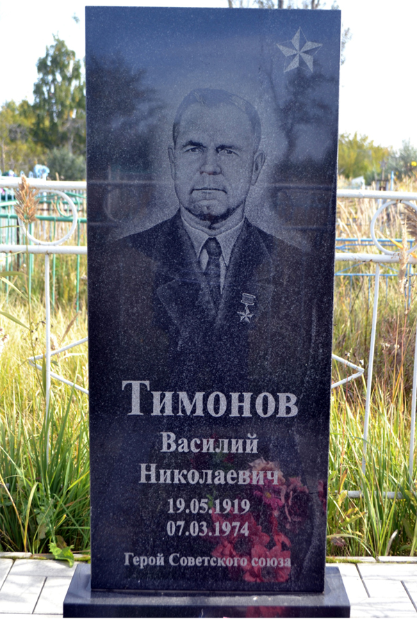Указом Президиума Верховного Совета СССР от 30 октября 1943 года за образцовое выполнение боевых заданий командования на фронте борьбы с немецко-фашистскими захватчиками и проявленные при этом мужество и героизм старшему сержанту Тимонову Василию Николаевичу присвоено звание Героя Советского Союза с вручением ордена Ленина и медали "Золотая Звезда".