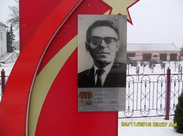 В городе Лиозно на аллее Славы установлена стела в честь И. Л. Ткачёва.