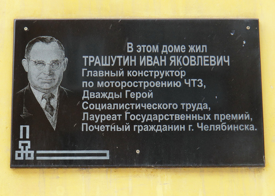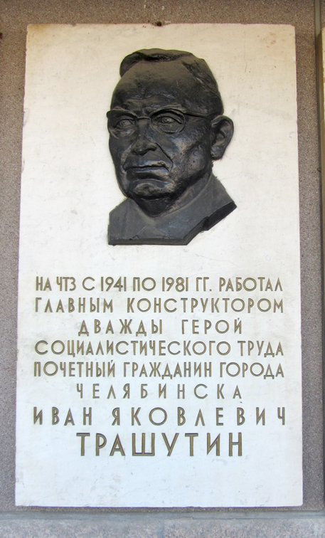 Трашутин Иван Яковлевич - выдающий конструктор-моторостроитель, один из основоположников научной школы конструирования дизелей, главный конструктор по моторостроению ордена Ленина Специального конструкторского бюро № 75 Челябинского тракторного завода, инженер-полковник.
