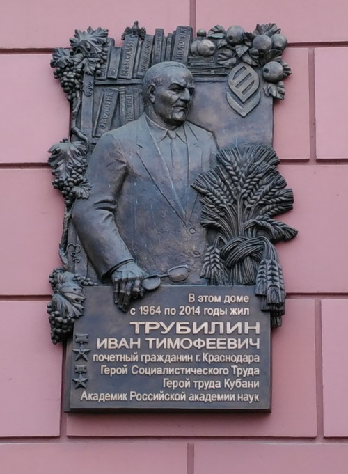 В Краснодаре на улице Ленина, дом 44, где жил Герой, в декабре 2015 года установлена мемориальная доска. Именем Академика Трубилина в краевом центре названа улица.