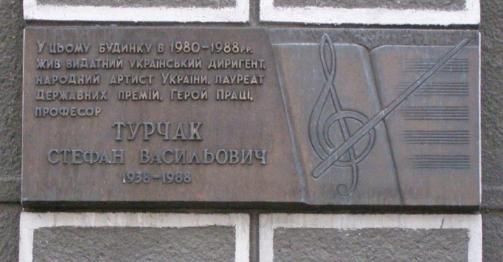 Установлена в Киеве (Украина) на доме (улица Терещенковская, 5), в котором в 1980-1988 годах жил С.В.Турчак. Фото Олега Кожухаря, 8.01.2010.