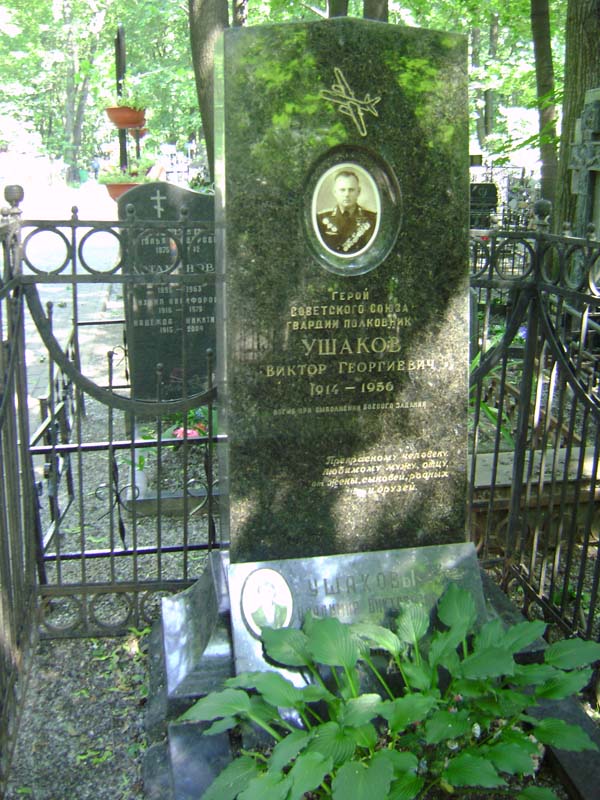 Полковник В.Г.Ушаков погиб 5 ноября 1956 года при исполнении служебных обязанностей. Похоронен в Москве на Ваганьковском кладбище (участок 20).