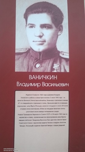 Ваничкин Владимир Васильевич - командир взвода 271-го гвардейского стрелкового полка (88-я гвардейская Запорожская Краснознаменная, орденов Суворова и Богдана Хмельницкого стрелковая дивизия, 8-я гвардейская армия, 1-й Белорусский фронт), гвардии лейтенант.