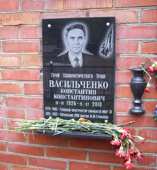 На территории Лётно-исследовательского института имени М.М.Громова установлен памятный знак К.К.Васильченко.