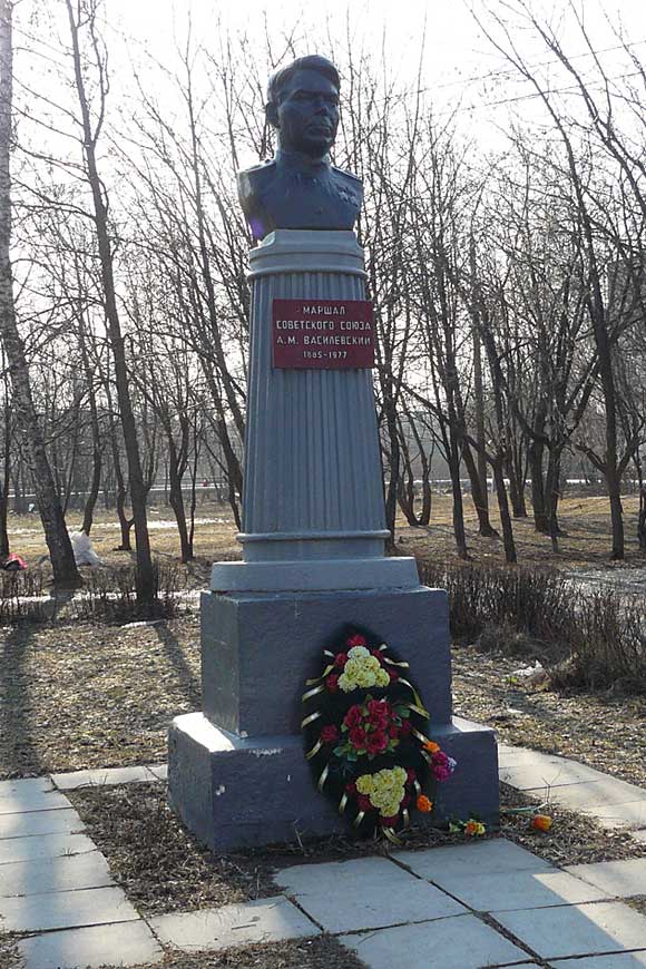Бронзовый бюст установлен в городе Кинешма, там же у здания школы - еще один бюст, на здании бывшего духовного училища установлена мемориальная доска. Бюсты установлены в городах Вичуга и Смоленск, памятник - в Калининграде. Увековечен на Аллее Героев в городе Кинешма. В Кинешме и Костроме, на зданиях учебных заведений, установлены мемориальные доски. Именем маршала названы улицы в Москве, Иваново, Кинешме, Челябинске, Энгельсе Саратовской области, Краснодоне Луганской области, площадь в Калининграде, бульвар в Самаре, средняя школа в Самаре. Его имя носят пик на Памире и сорт сирени, океанский танкер и большой противолодочный корабль. Имя А.М.Василевского в 1977-1991 годах носила Военная академия войсковой ПВО в городе Киеве (в 1986-1991 годах она называлась Военной академией ПВО Сухопутных войск).