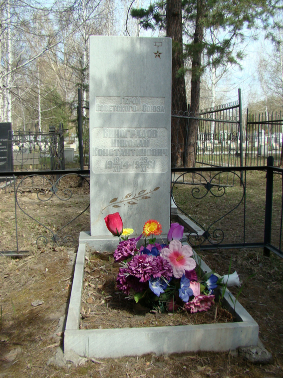 Командир противотанкового орудия 241-го гвардейского стрелкового полка (75-я гвардейская стрелковая дивизия, 60-я армия, Центральный фронт) гвардии старший сержант Н.К.Виноградов особо отличился при форсировании реки Днепр севернее Киева в районе села Глебовка Вышгородского района Киевской области Украины.